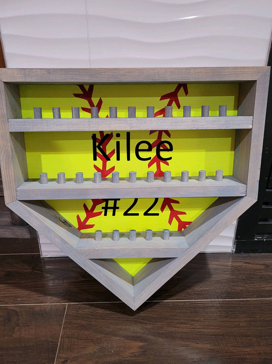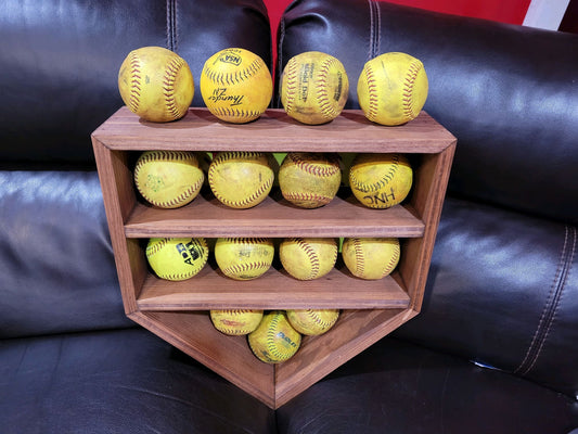 Baseball or Softball Homeplate Ball Display. Holds 15 Balls Wall Hanging Custom Different Colors Available Solid Wood Stained Free Shipping