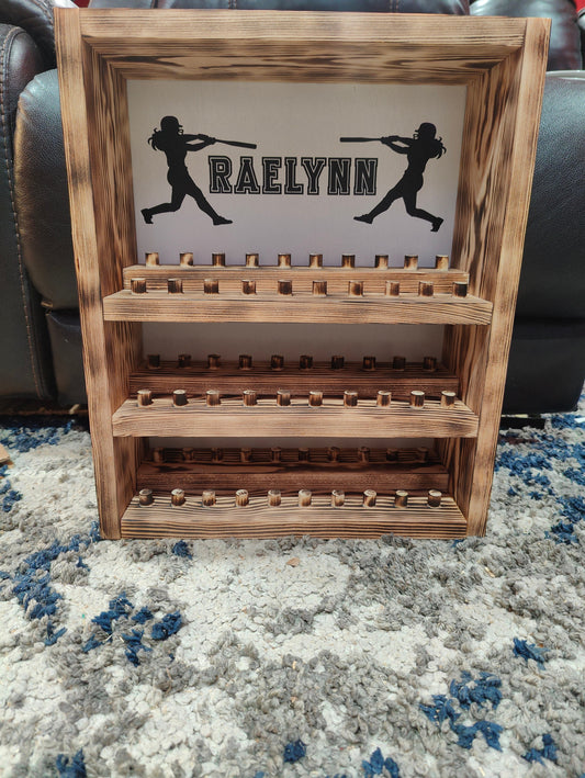 Baseball or Softball Ring and Ball Display Shelf Holds 38 Balls 61 Rings Tournament Rings Home Run Ball Custom Name Color